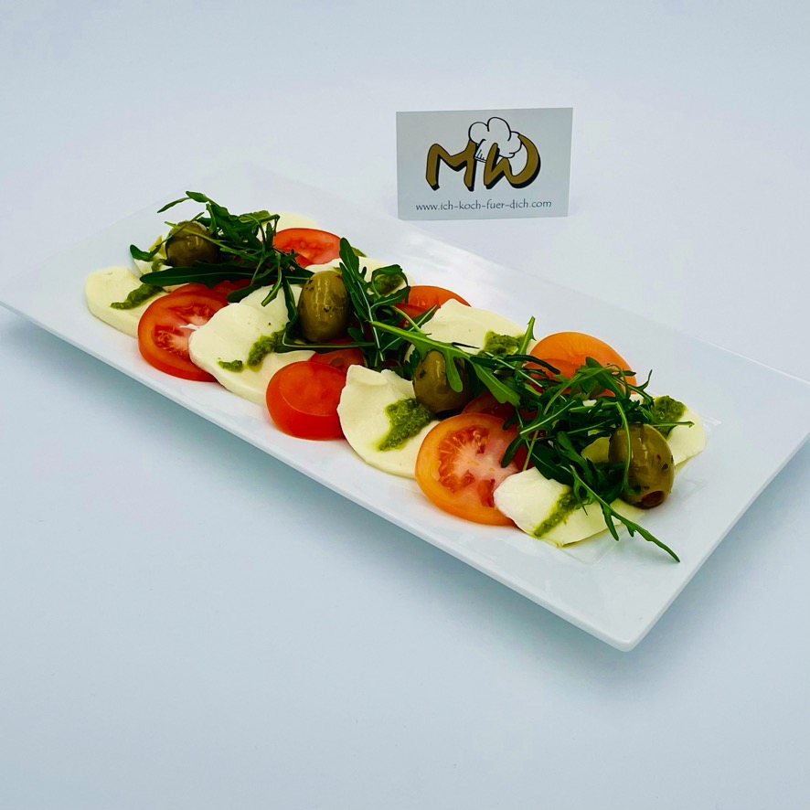 Büffelmozzarella mit Tomate, Basilikum und Oliven
