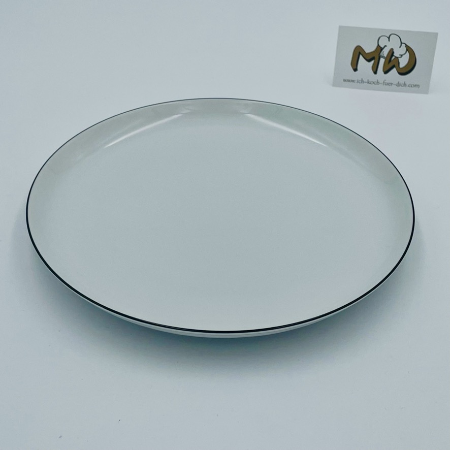 Speiseteller Lido Black 27cm, weiß – Rand handbemalt schwarz
