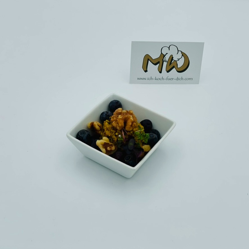 Curry Quinoa Salat mit Blaubeeren und gerösteten Nüssen
