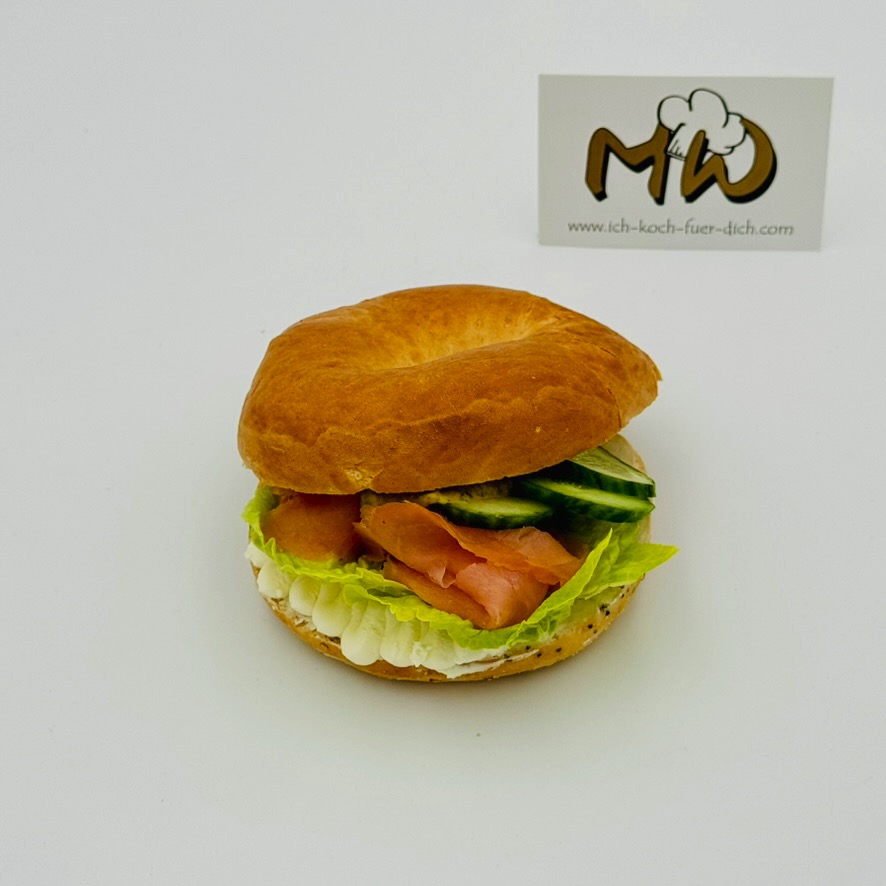 Bagel mit Räucherlachs und Frischkäse gefüllt