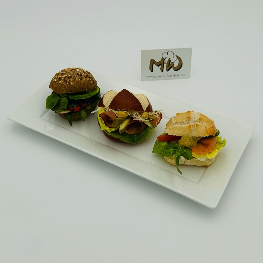 servierfertig geliefert auf Platten, exklusive Teller und Besteck