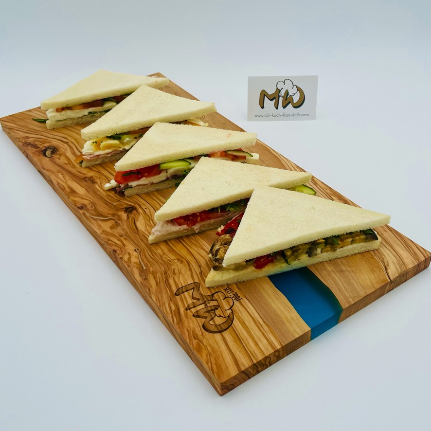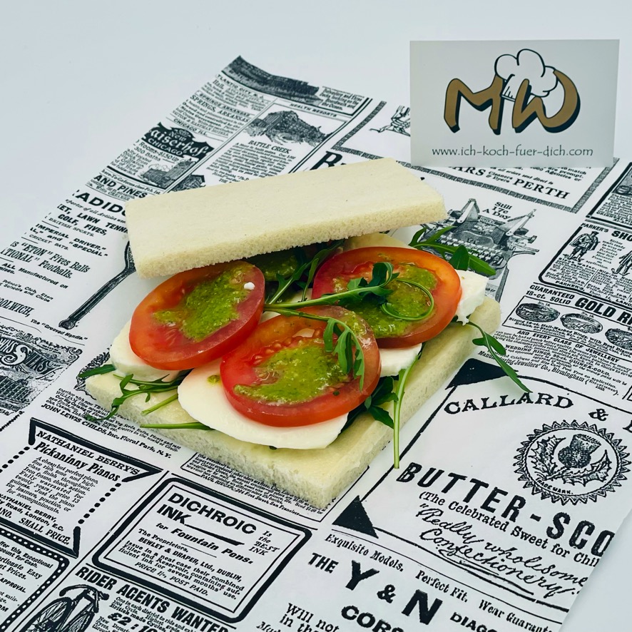 Tramezzini mit Tomate, Mozzarella, Pesto und Rucola