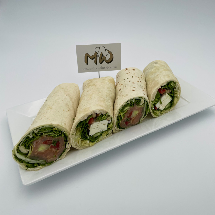 Wrap groß mit Räucherlachs, Honig Senf Creme, Gurke und Salat